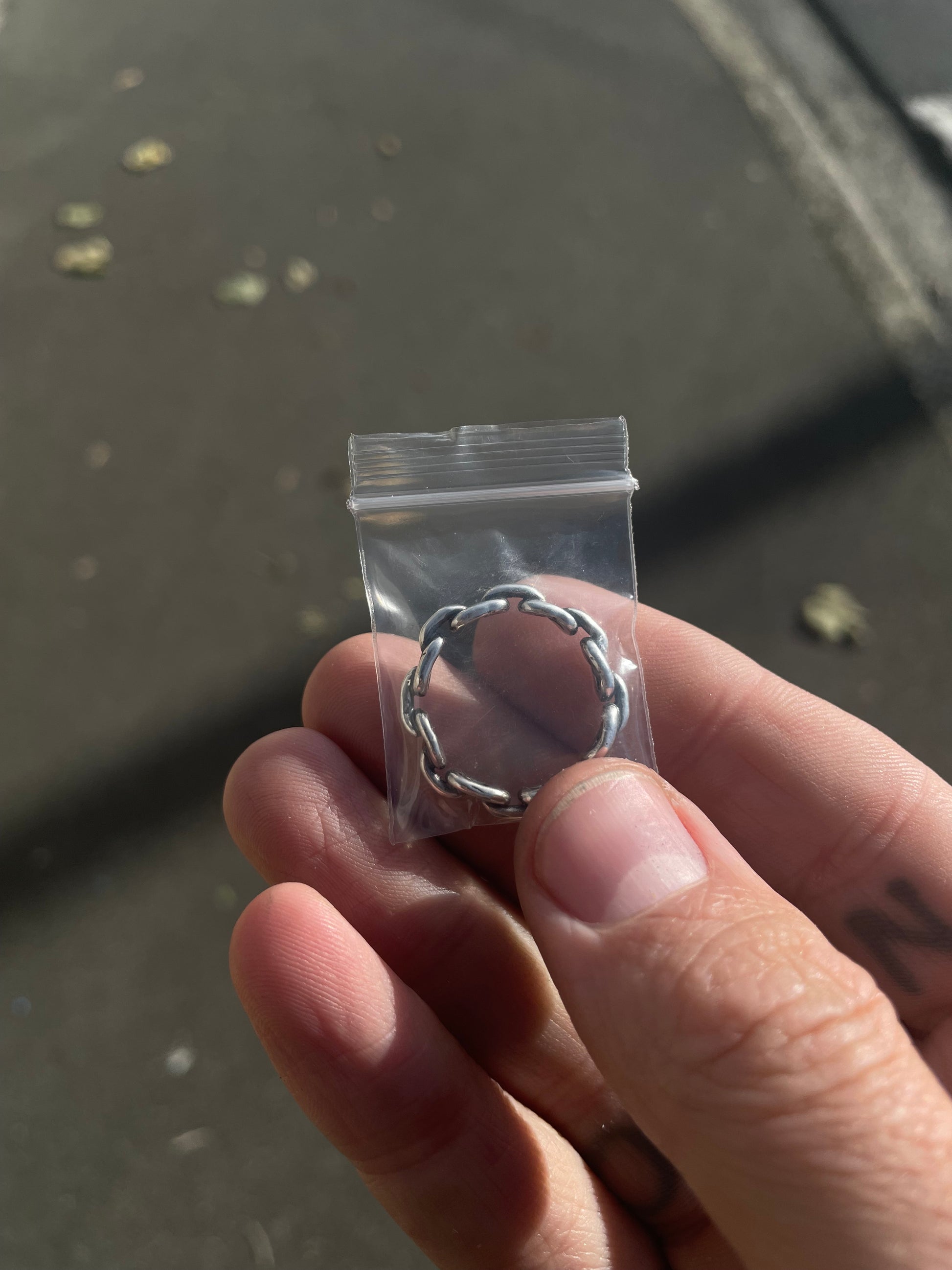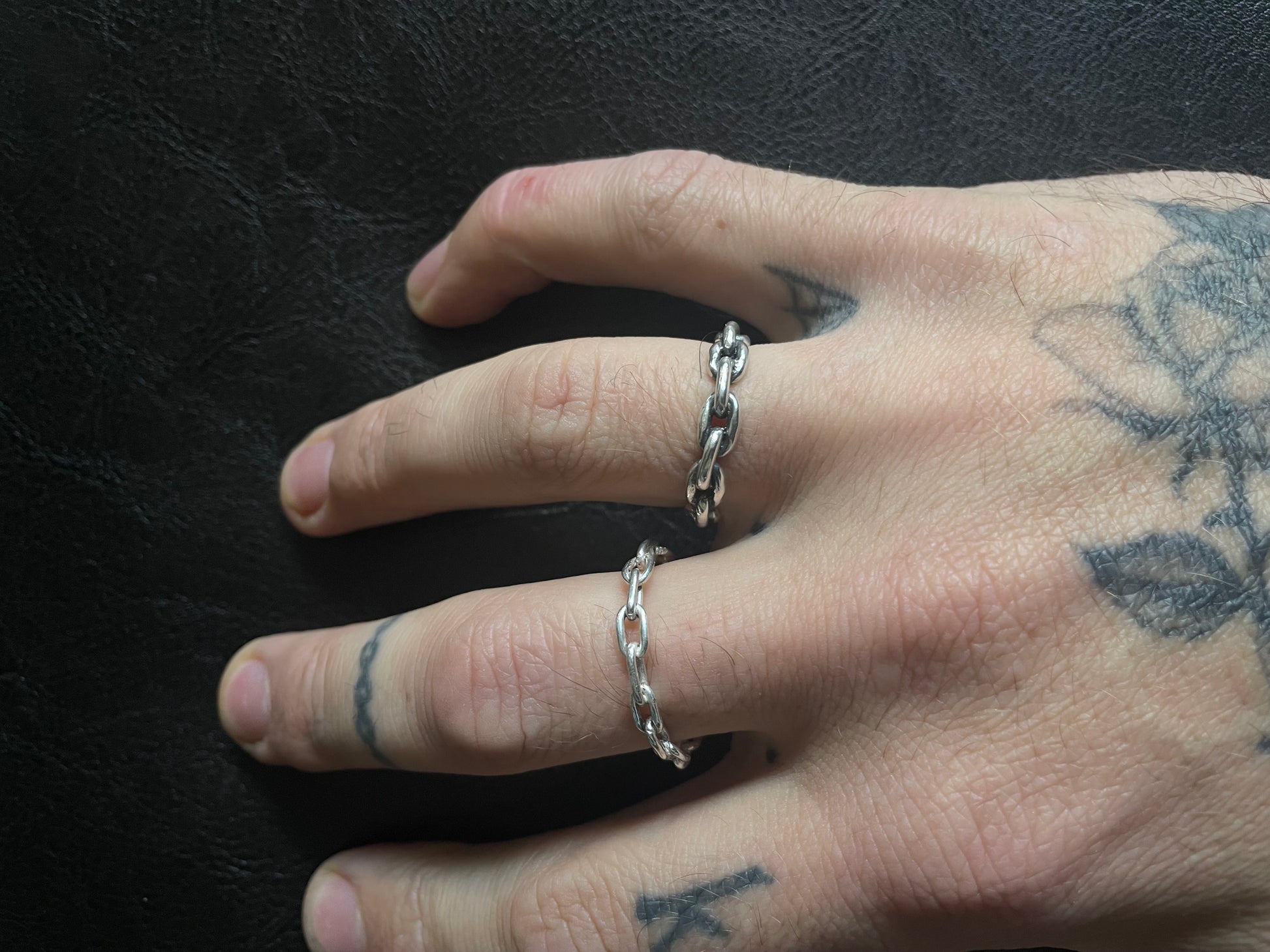 Thicker chain ring, compared to the old one on my middle finger. Made using 1.5mm silver wire as opposed to 1mm like the first version.