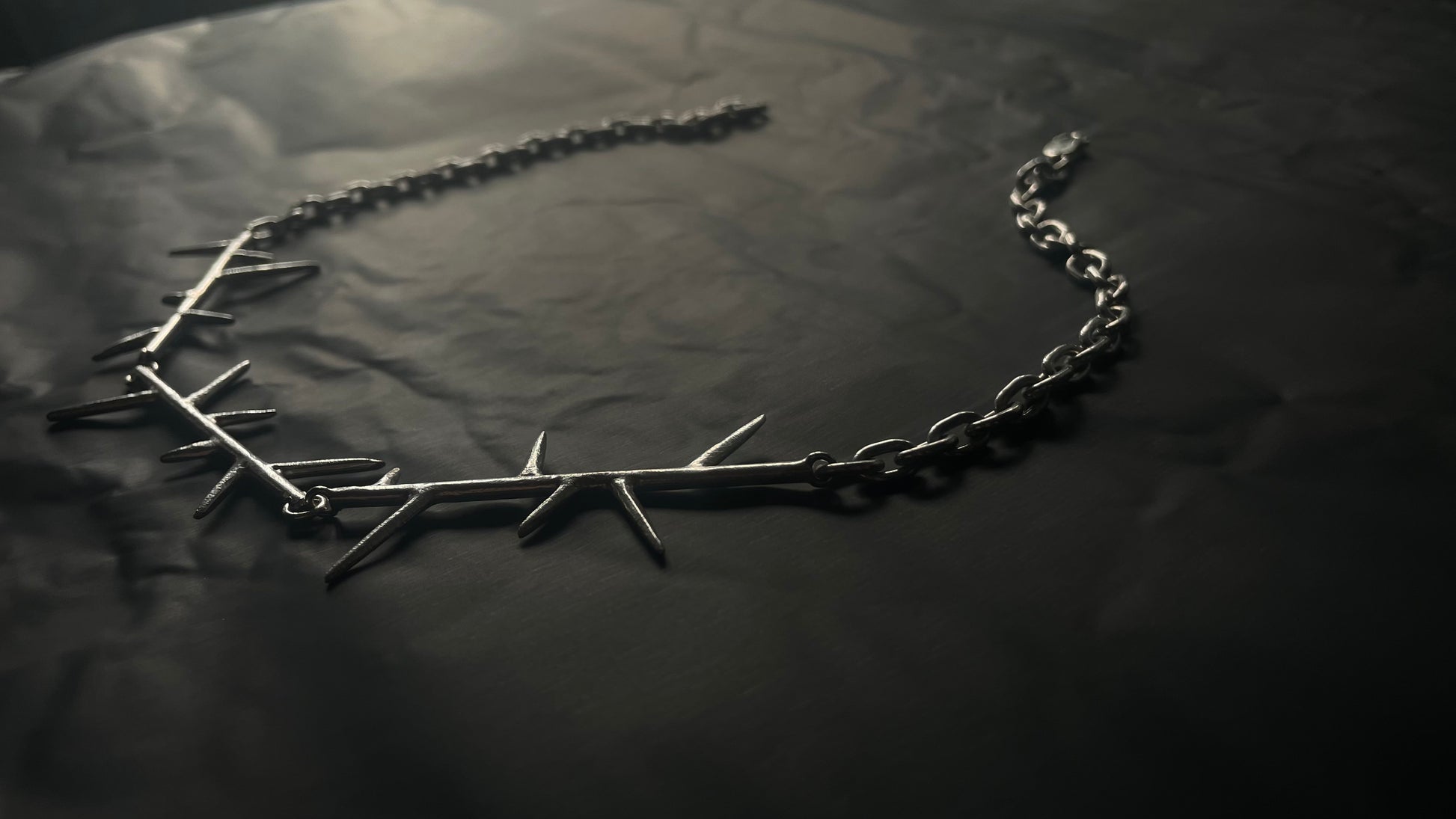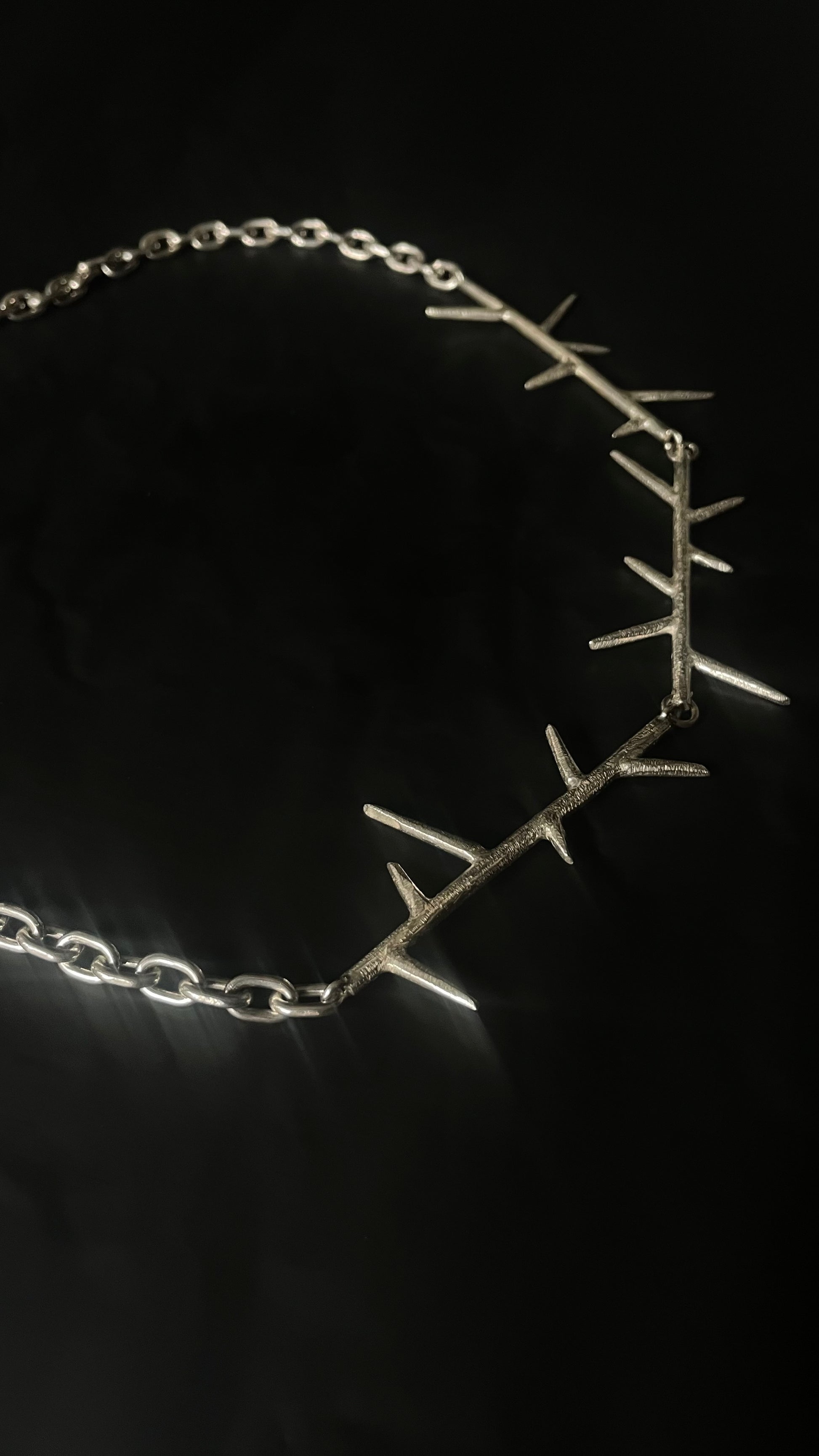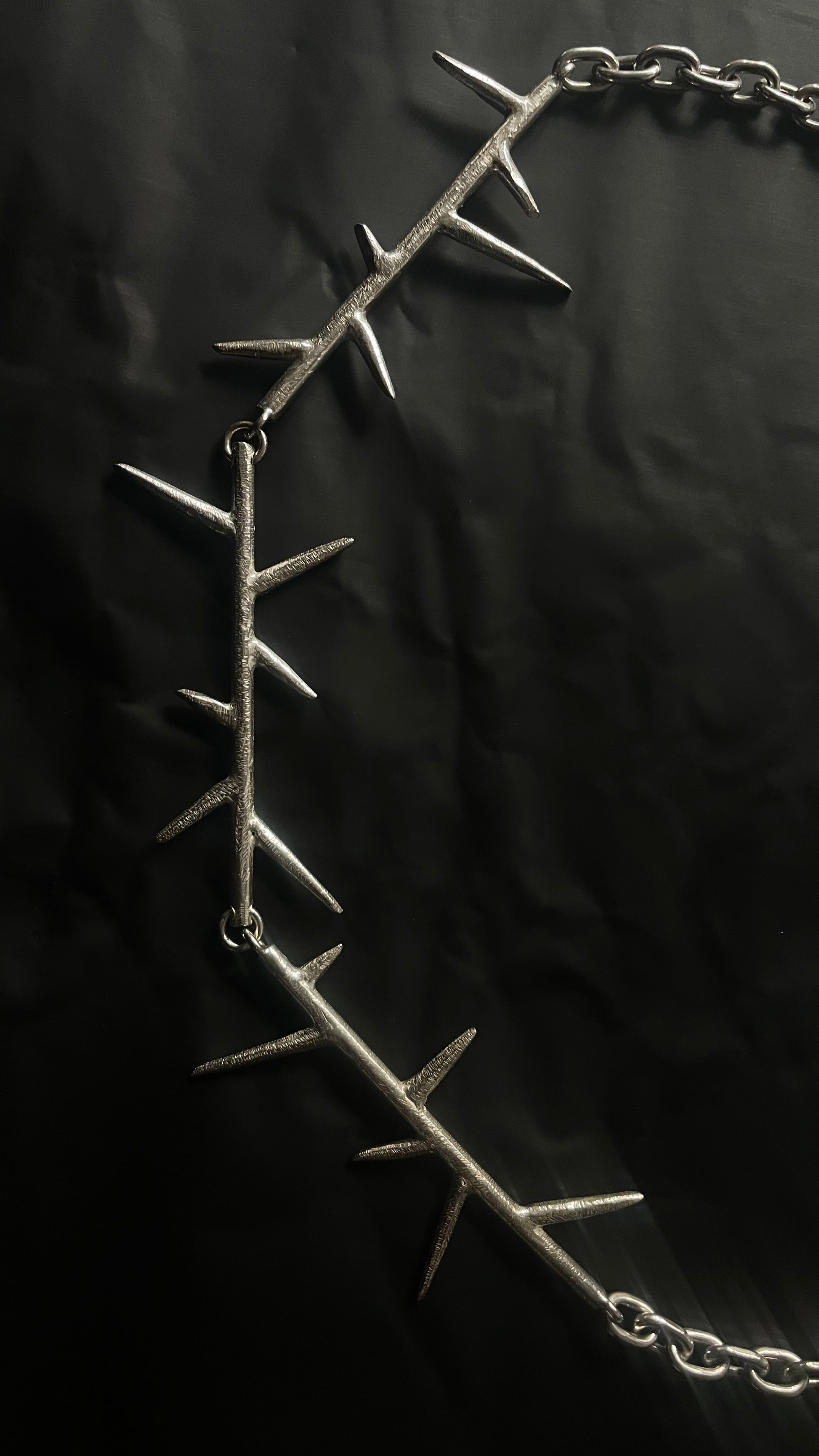 Sterling silver thorns linked together on a handmade chain. Each branch will be hand carved and may differ slightly. Sits at around 42cm, can alter to your specs, leave a note during checkout.
